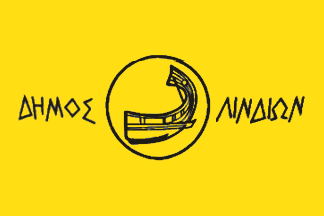 Lindos lies on the east coast of the island. Its flag (photo) was yellow with the municipality's emblem and name.