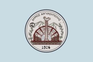 The flag of Argyroupoli (Kokkonis website) was light (silver?)-blue with its seal in the middle, including the name of the municipality and the year it was founded, 1926. Following the population exchange between Greece and Turkey prescribed in 1923 by the Treaty of Lausanne, refugees from Argyroupolis in northeastern Turkey (modern, Gümüşhane, meaning "Silver House") arrived in 1926 at the place then named Ktima Geroulanou (Κτήμα Γερουλανου). They named the new settlement Nea Argyroupolis (Νέα Αργυρούπολη, New Silver City), as a remembrance to their old hometown. Hence probably the dove and the peace sign on the seal. There was some resemblance between the two towns as Argyroupoli is built on a plain with the Hymettus (Υμηττός) mountain to its north, as Gümüşhane is built on a plain with the Pontic Alps to the north; the Hymettus montain appears on the background of the seal of Argyropouli.