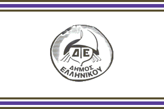 The flag of Elliniko (Kokkonis website) was white with the municipal emblem in the middle and thin greyish-white-dark blue-white-greyish stripes on the upper and lower edge.