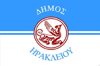 A first flag (photo) of Heraklion is white with the emblem of Heraklion and ΔΕΜΟΣ ΗΡΑΚΛΕΙΟΥ (Town of Heraklion) written in green letters under