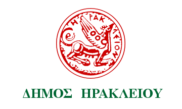 by ΔΕΜΟΣ (top, white letters) and ΗΡΑΚΛΕΙΟΥ (bottom, light blue letters), reading "Town of Heraklion".