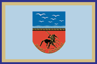 The former municipality of Vistonida was named after Lake Vistonida. The flag of of Vistonida (Kokkonis website) was light blue with an outer dark blue and an inner golden border, and its shield-shaped logo in the center.
