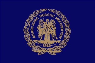 The new municipality of Missolonghi uses the same flag (photo, photo, photo) as the former one (Kokkonis website).