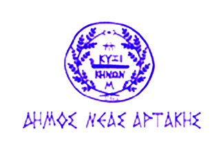 Nea Artaki, located north of Chalcis, is a well-known tourist destination, notably for its beaches. Its flag (Kokkonis website) was white with the municipality's emblem and name in blue.