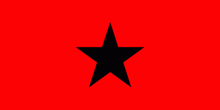 it is red with a large black star in the middle of the flag. Please