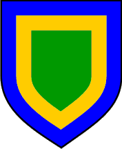 The coat of arms is "vert within a bordure or and azure". This symbolically represents a green island with sandy shores in the middle of the sea.