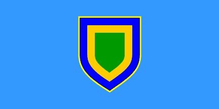 The flag of the Municipality is light blue with the coat of arms of the Municipality in the middle.