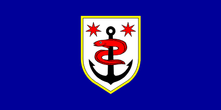 The anchor represents the port and safe anchorage; the sun stands for life energy and progress.