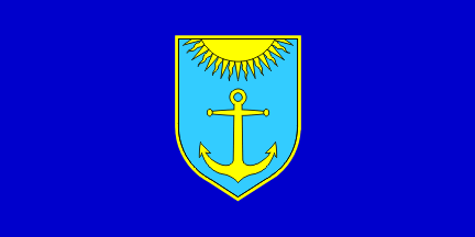 The flag proposal open to public discussion is in proportions 1:2, blue, or, alternatively, red with the coat of arms in the middle.