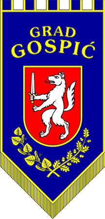 The coat of arms of the Town of Gospic is of semi-circular shield shape. In the semi-circular shield on a red field is a silver wolf in fighting position. The wolf in its right paw holds a sword of silver blade and golden handle.