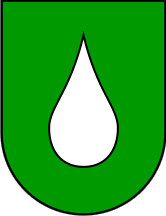 The coat of arms (municipal website) is "Vert a goutte d'eau argent".
