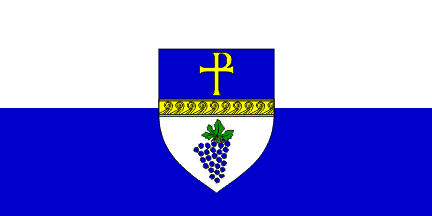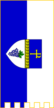 The ceremonial flag of the Town (gonfalon) is dark blue with the coat of arms of the Town in the middle.