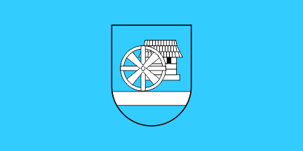 The coat of arms in actual use more or less regularly shows the window of the mill as black - while the drawing in the 1996 official gazette adopting it clearly shows it in the shield background colour (azure).