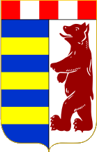 The coat of arms of Ruthenians in Croatia is "Per pale azure three bars or and argent a bear rampant maroon and the chief compony gules and argent". This is based on the traditional coat of arms of Ruthenia, established in 1920 when Ruthenia became part of the newly formed Czechoslovakia, and which is nowdays used by Ruthenians worldwide as their symbol. The coat of arms of Ruthenians in Croatia is topped with compony chief, representing their current homeland.
