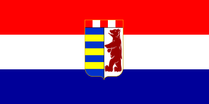 The flag of Ruthenians in Croatia is a red-white-blue tricolour with the coat of arms in the centre of it.