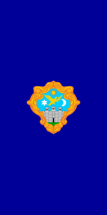 The flag of Požega, based on the former flag of the town, is in proportions 1:2, blue with the coat of arms in the middle.