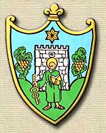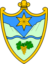 Frankopan ("Per fess gules a mullet or and of the last"). The grapevine makes the arms canting, the name of the municipality meaning "Grapevine Valley".