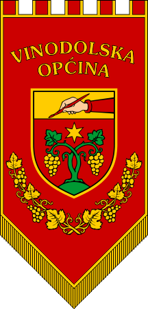 The flag of Vinodol is described in the Municipality Statutes Statut Općine Vinodolske, adopted on 15 March 2006 by the Municipality Assembly and published on 12 May 2006 in Službene novine Primorsko-goranske županije, No. 19.