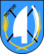 In a blue shield a ploughshare crossed by a rake and a scythe. On both sides are the wheat ears. All elements in the shield symbolize the way of living and the rich soil from which and on which the people are living. The dimensions of the coat of arms are 50 cm x 50 cm.