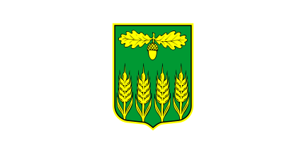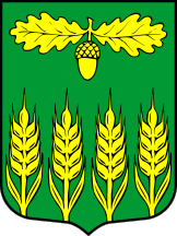 The coat of arms (municipal website) is described as "In a squarish shield, vert, in chief oak leaves and an acorn or and in base four wheat ears also or".