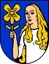 The coat of arms of the Municipality of Jasenice is in blue a figure of Vila Velebita holding in her right hand the Velebit endemic flower (Degenia velebitica).