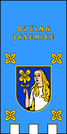 The symbols of Jasenice (municipal website) are prescribed by Decision Odluka o grbu i zastavi Općine Jasenice, adopted on 9 June 2000 by the Municipality Assembly and published on 25 October 2000 in the County official gazette Službeni glasnik Zadarske županije, No. 6.