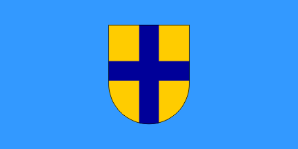 The coat of arms is prescribed as "in a semicircular shield on a golden/yellow field a blue cross".