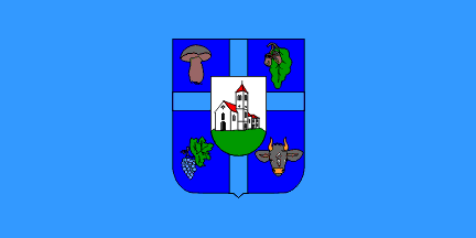 The flag of Kravarsko (photo) is in proportions 1:2, light blue with the coat of arms in the middle.