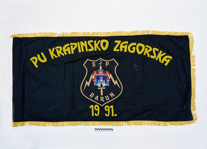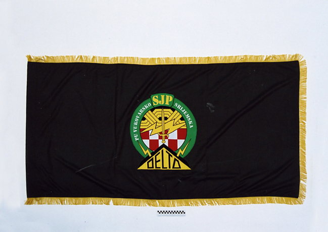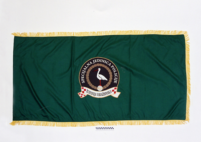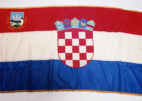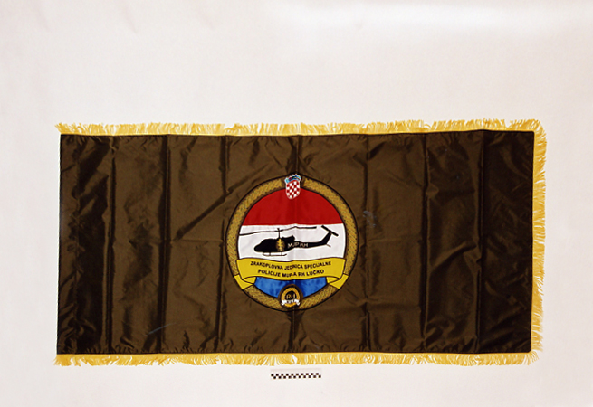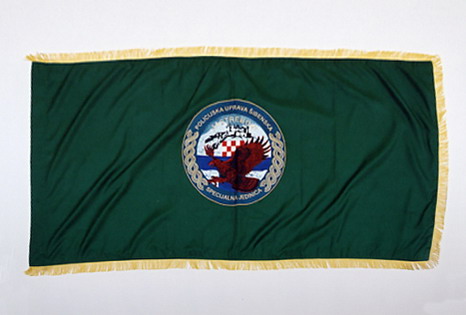 A "war flag" (photo) with ribbon (photo) was ceremonially granted by the President of the Republic on the occasion of the establishment of the "National Guard Corps" - the predcessor of the Croatian Armed Forces, at the time, still within Yugoslavia, established on 28 May 1991 within the Ministry of the Interior.