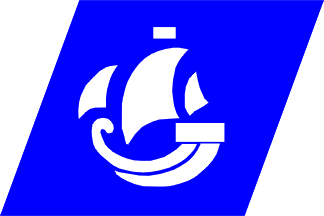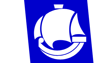 The house flag of Croatia Line is white with a slanted blue field with a white stylized sailing ship.