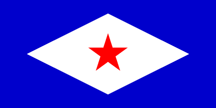The house flag of Jugolinija, as shown by Josef Nuesse and by Isaić [isa01], is blue with a white lozenge charged with a red five-pointed star in the middle.