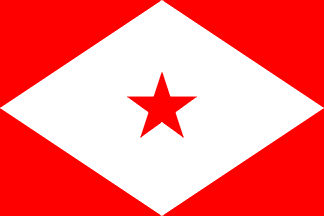 The flag of Jugoslavenska slobodna plovidba, as shown by Loughran, 1995 [lgr95], is red with white lozenge throughout containing a red five-pointed star.