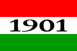 The house flag of Indeficienter, as shown in Lloyd's book of house flags and funnels (1912) [llo12], is a Hungarian tricolour of red over white over green with the black number "1901" in the central stripe, denoting the year when the company was established.