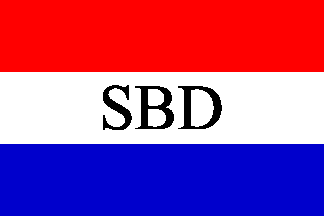 Isaić [isa01] writes that a number of Croatian shipowners used the Croatian tricolour as the base for their house flags and gives example of the Senj Steamship Company, which used the tricolour with the initials "SBD" in the middle.