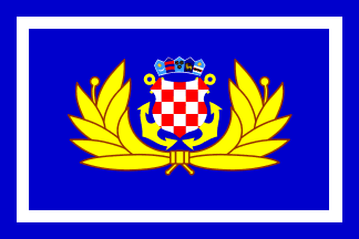 In the office of the Commander of the Navy that I visited on the same occasion, this flag was hoisted indoors, together with the Croatian national flag and the flag of the Navy (the naval jack), all in proportionns 1:2.