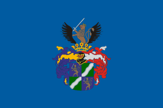 Its flag is blue with its coat of arms in the center of the flag. Ratio is