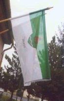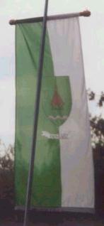 The flag of Pankasz village, Vas county (coat or arms on green over white)