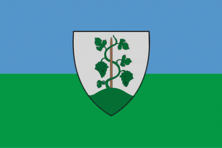 Its flag is blue and green, with its coat of arms in the center of the flag.