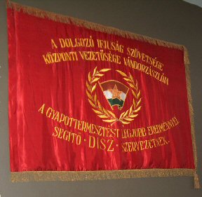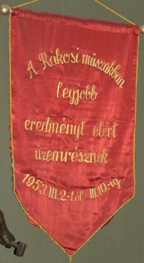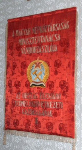 photos of tipical communist flags, such as Winner flag of the Working Emulation of the Rákosi