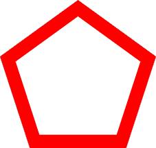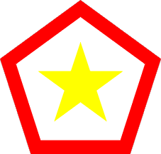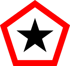 Red bordered white pentagon with yellow five pointed star in the middle.