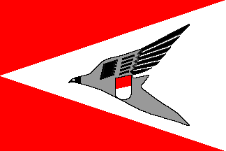 The flag of the former Garuda Indonesia Airline was red with a white triangle extending from the mid-hoist to the fly, bearing on it a schematic garuda bird in grey and black, with an Indonesian shield (red over white) on its body.