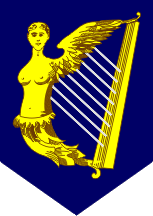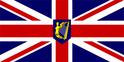 union jack with a yellow harp on a white (? or grey or silver) shield. Since such a