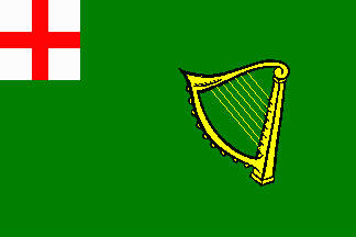 A similar type of ensign was supposed to have been used in Irish waters between 1688 and 1694; a green flag with a gold harp in the fly but with a St Patrick's saltire in the canton. It is illustrated in a small pamphlet on flags produced by the Royal United Services Institute in about 1895, written by Rear-Admiral R.M.Blomfield. No indication of the source of the information. A bit suspect in my estimation.