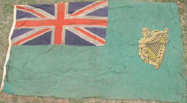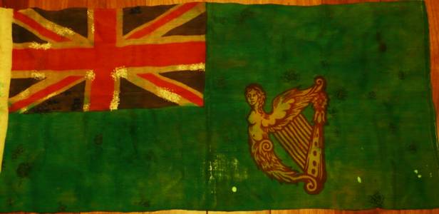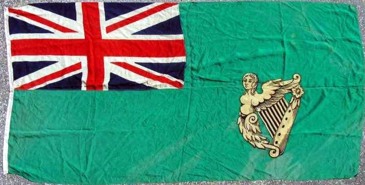 1846. In February it was being flown at Cadiz by a small trading brig belonging to Harding & Co of Dublin. Described by an Admiralty Agent as a green ensign with a harp and crown in the fly and a Union Jack in the corner. The Agent wrote to the governor of Gibraltar that the flag had been confiscated from the same vessel on two previous occasions in Ireland. [HO 45/1557]