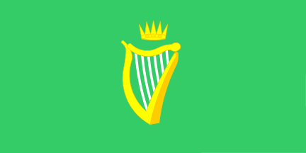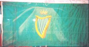 "Greenish flag with harp and small cross on it." Probably same flag described as