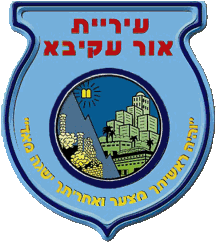 Keywords: or aqiva | iriyat or aqiva | aqiva | text: hebrew (black) | coat of arms (blue) | coat of arms (landscape) |