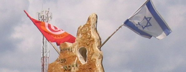 village. Besides the Israeli flag there is an unidentified flag.
