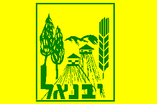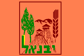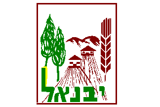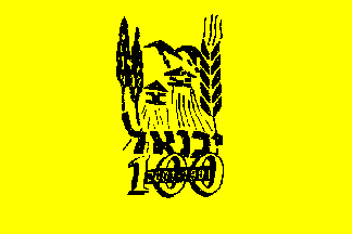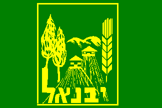 Local Council Yavne'el (from Joshua 19:33) is situated in a small valley on the sloops of Naphtali Mounts, about 10 KMS SW to Tiberias on Afula - Kinneret road. Est. 1901 as Yama. Pop: 2,200. The Local Council also includes the settlements of Smadar (est. 1956), Bet Gan (est. 1903) and Mishmar HaShlosha (est. 1937). In my visit I spotted two emblems, a municipal one and a 100th anniversary one. Flags showing the municipal emblem were:
