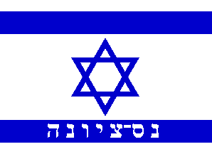 waving a blue-white flag with the inscription NES ZIYYONA. A very