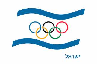 The Israel Olympic Committee flag shows the Olympic rings between two wavy blue